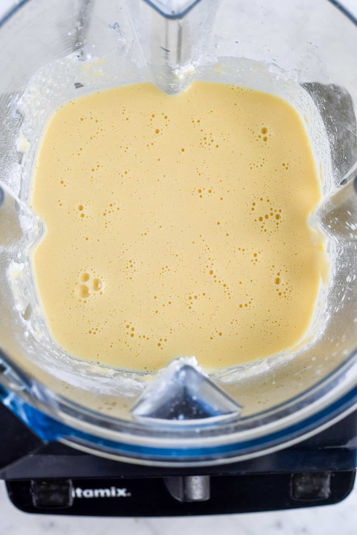 - Blend the mixture (without eggs) until smooth 1-2 minutes to get a nice creamy texture, not grainy.