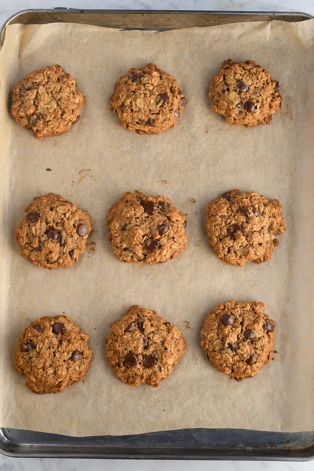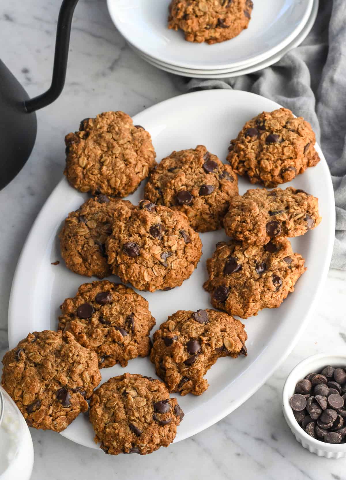 - Chocolate chips – Melted pockets of chocolate that make these cookies irresistible. I use 3/4 cup but 1 cup will make the cookies even more chocolaty. Raisins can be substituted if you want an even healthier cookie.