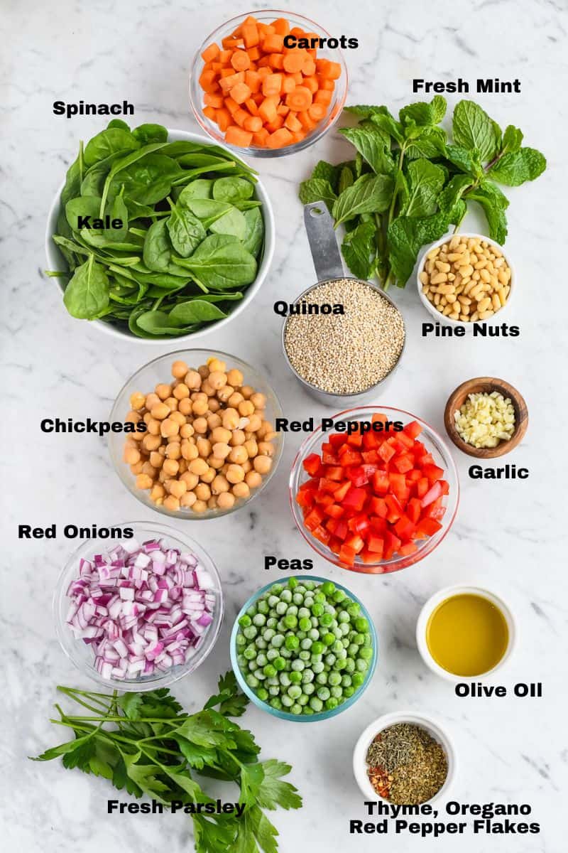 • Fluffy quinoa and hearty chickpeas provide plant-based protein