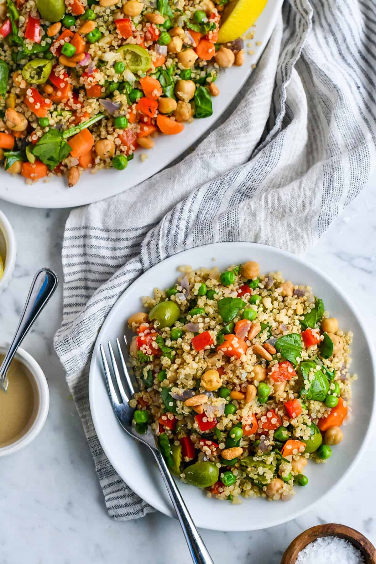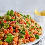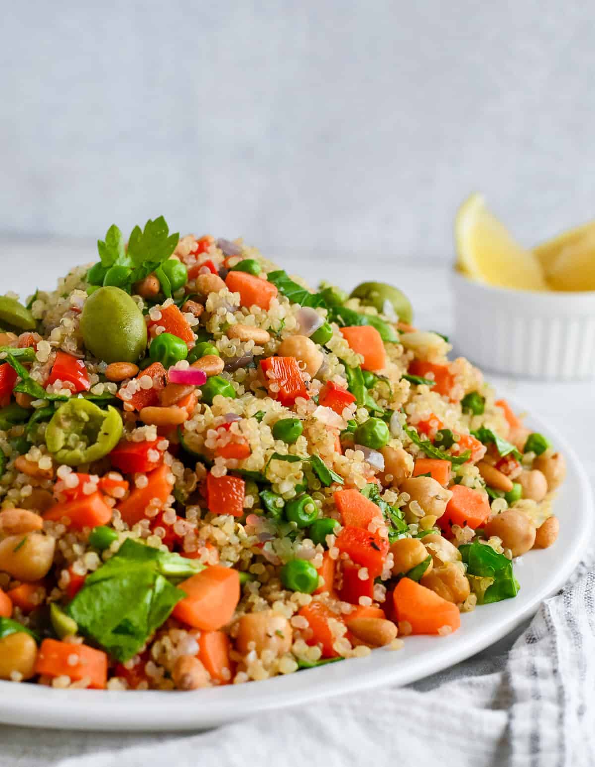 Mediterranean Quinoa with Vegetables on plate with for next to the platter