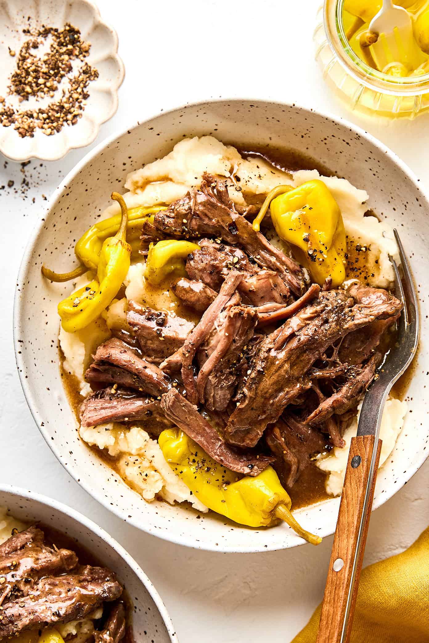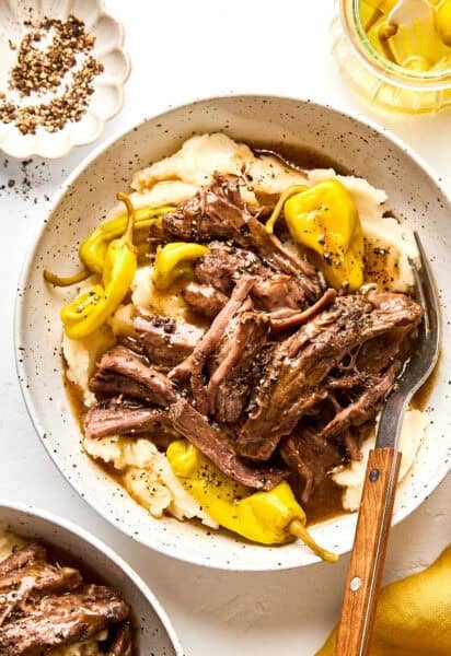 This Mississippi pot roast recipe is slow-cooked until tender with tangy pepperoncini, savory herbs, and a rich buttery gravy made completely from scratch. Crock-Pot, Instant Pot and Dutch oven options included!
