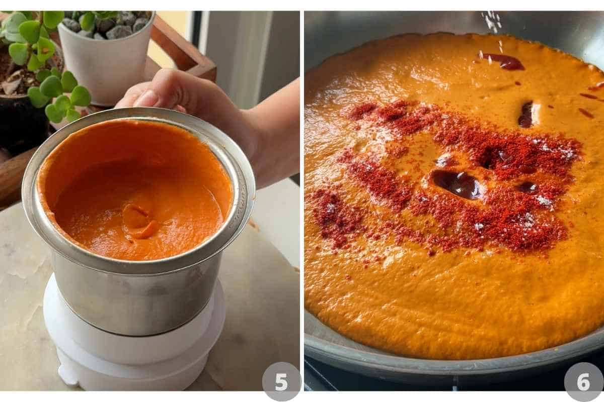 • Switch off the flame. Cool completely and transfer to a blender or liquidiser, and blend till smooth.