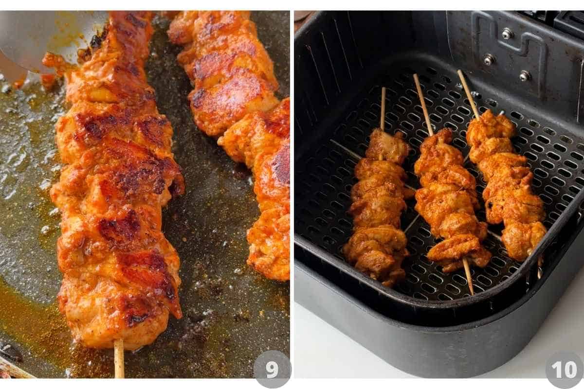 • Pre heat your air fryer and then air fry at 190C for 5 minutes. We want to cook the chicken partially because it will continue to cook in the gravy