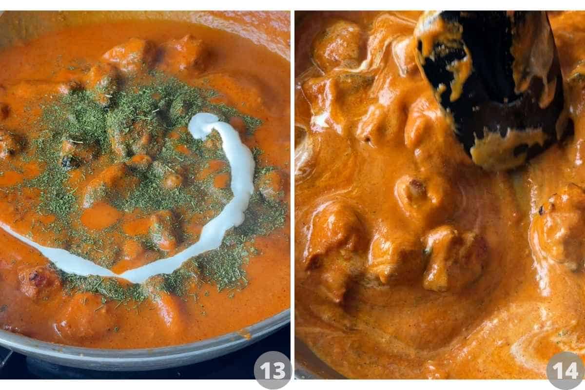 Stir in the kasuri methi and fresh cream.