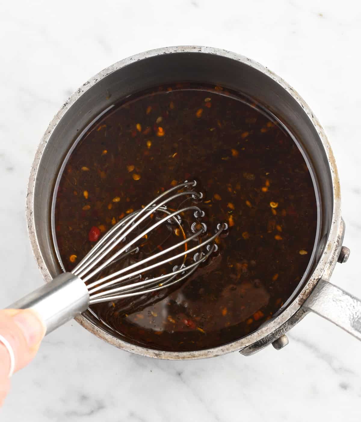 Make the Sauce – Whisk the vinegar, soy sauce, maple syrup, coconut sugar, sesame oil, garlic, and ginger in a small saucepan. Bring to a boil, then reduce and simmer for about 5 minutes to develop flavor. Remove from heat.